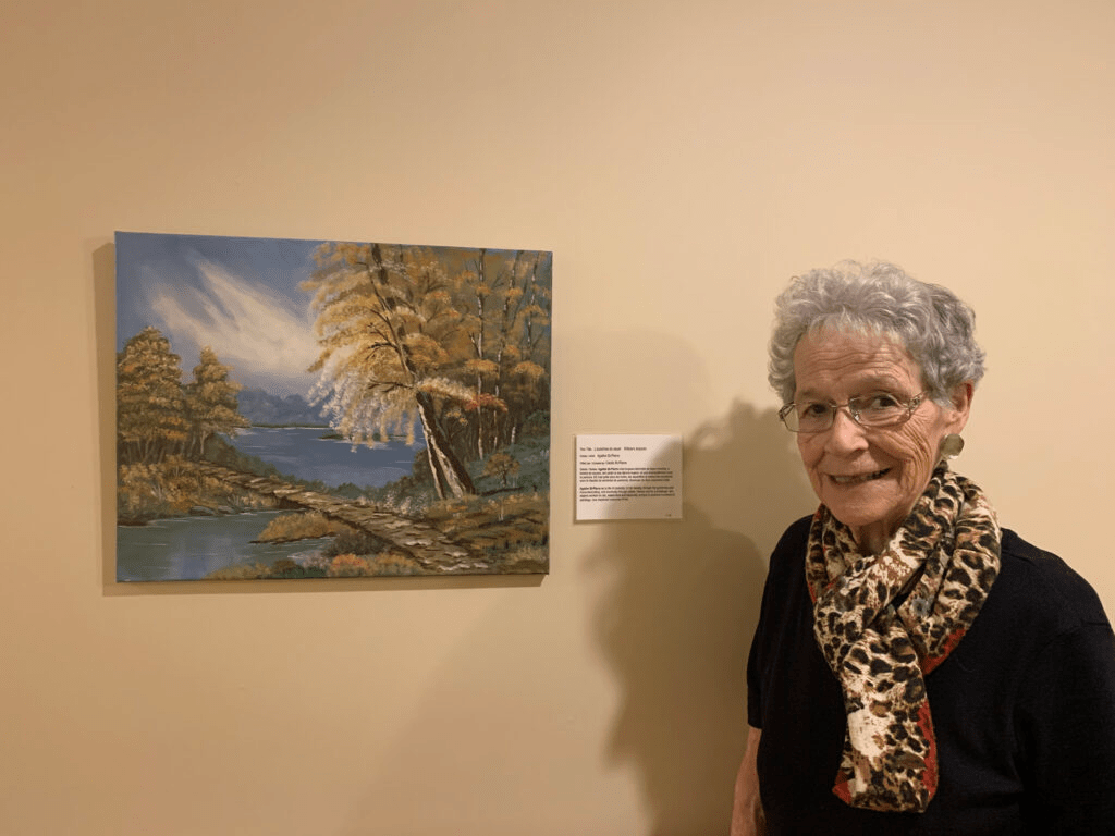 Pour trouver les cadres, Mme Tellier a sollicité le Club des retraités d’Edmonton, connu aujourd’hui sous le nom de Club 50+ région d’Edmonton. Elle s’esclaffe en se souvenant de ses paroles. «Vous avez quelque chose de caché sur votre lit que j’aimerais avoir. Ce n’est pas les pantoufles de votre mari, ni ses chaussures, mais plutôt les peintures que vous y avez mises parce que vous n’avez pas d’autres places où les mettre!»