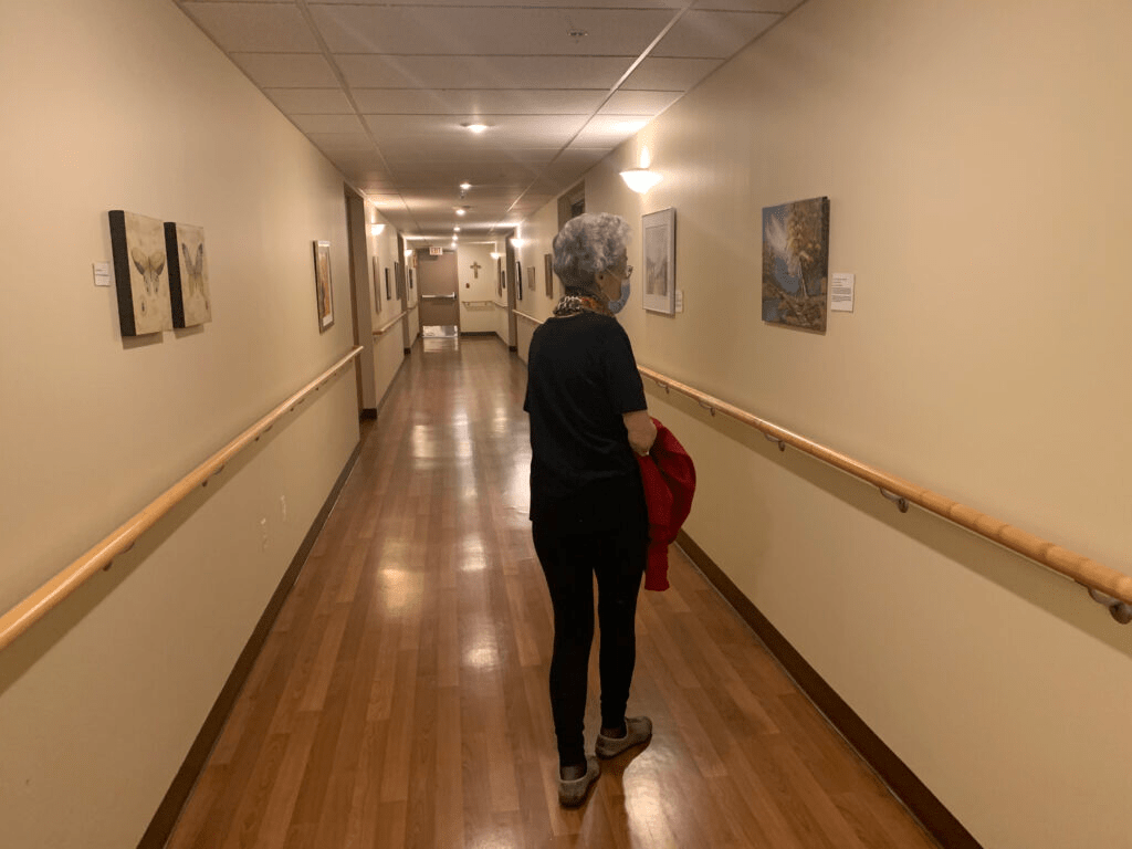 En février 2018, lorsqu’elle déménage au Centre de Santé Saint-Thomas, Yvette Tellier trouve que les murs de la résidence sont vides. «Je marchais dans le couloir et il n’y avait pas d’énergie.» Puisqu’elle est une nouvelle résidente, Mme Tellier préfère alors prendre le temps de s’approprier les lieux avant de penser à les décorer.
